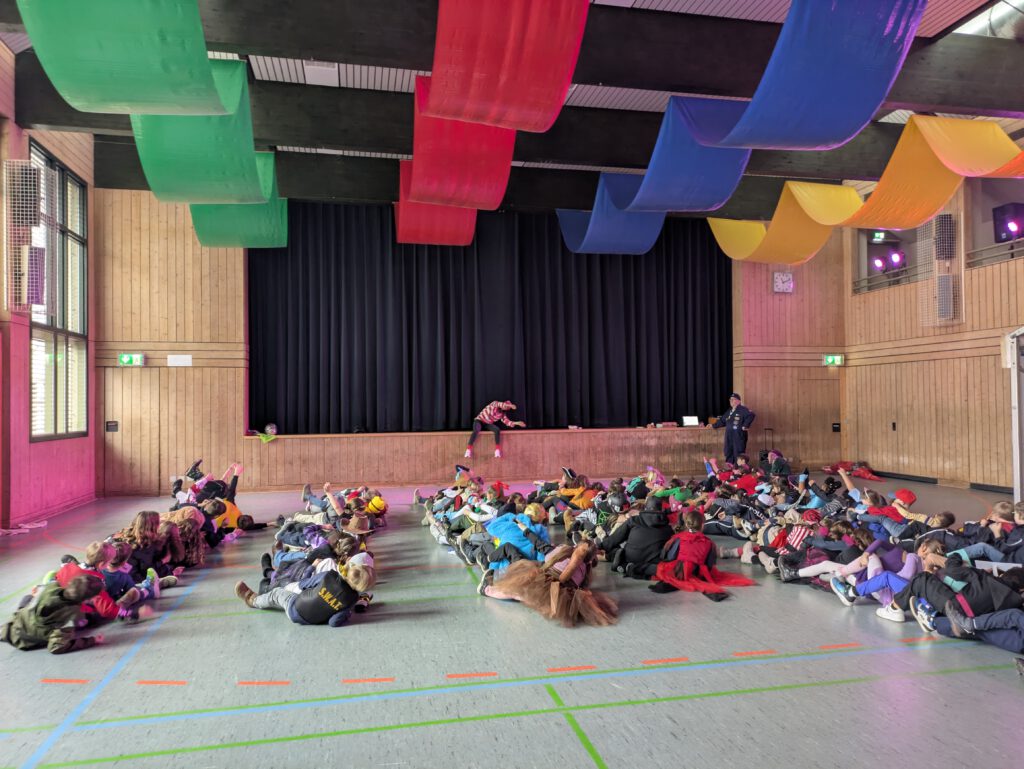 Schon vor dem Startschuss bereiteten sich die Schülerinnen und Schüler wie die Profis vor. Nach der Vergabe der Startnummern wurde die 600 Meter lange Laufstrecke erst einmal gemeinsam abgelaufen, damit jeder genau wusste, wo es langgeht. Ein paar Lockerungsübungen und ein lockeres Warm-up halfen dabei, die große Aufregung in sportliche Energie umzuwandeln.