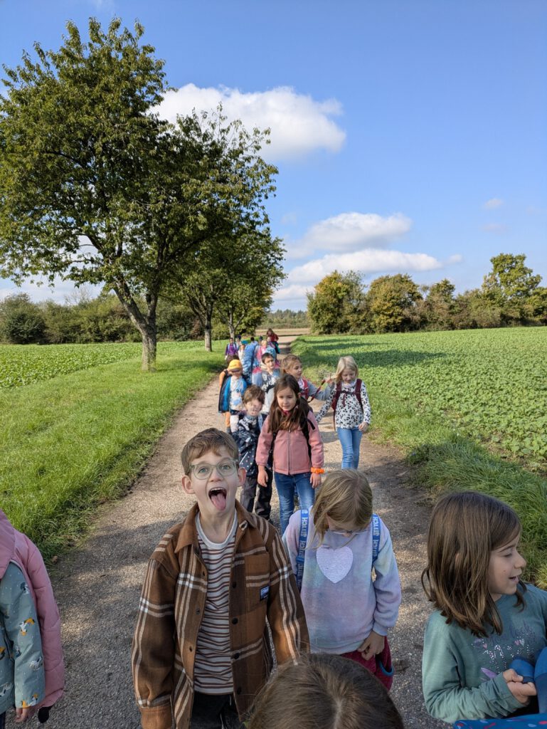 Im Zuge des neuen Themas im Sachunterricht, besuchte die Klasse 2 in der vergangenen Woche bei schönstem Wetter die Kramer Eiche.