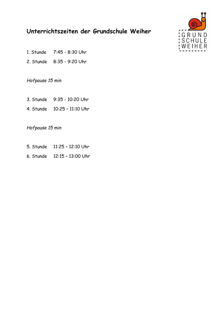 Unterrichtszeiten