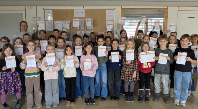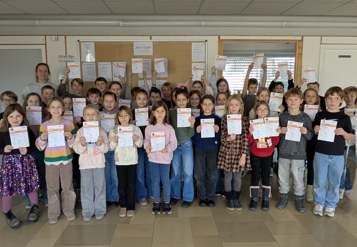 Zum Jahresabschluss durften sich 64 Schülerinnen und Schüler der Grundschule über das Deutsche Sportabzeichen freuen.